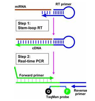 目前通用的miRNA逆轉(zhuǎn)錄和定量PCR方法(Stem-Loop莖環(huán)法),原理如下: