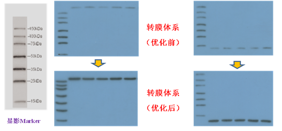 (2)????? 高分子量(>120 kDa)以及低分子量(<10 kDa)轉(zhuǎn)膜優(yōu)化:采用優(yōu)化的轉(zhuǎn)膜條件以及特有的轉(zhuǎn)膜緩沖液實現(xiàn)高分子量以及低分子量的有效轉(zhuǎn)膜。