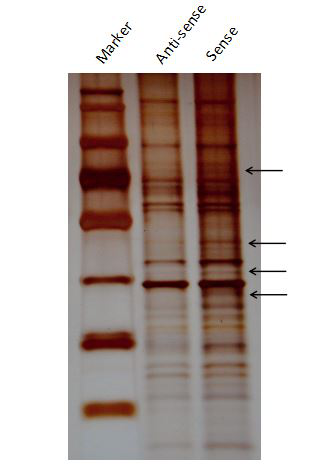 牛某lncRNA基因SenseAnti-Sense下拉蛋白的PAGE銀染結(jié)果