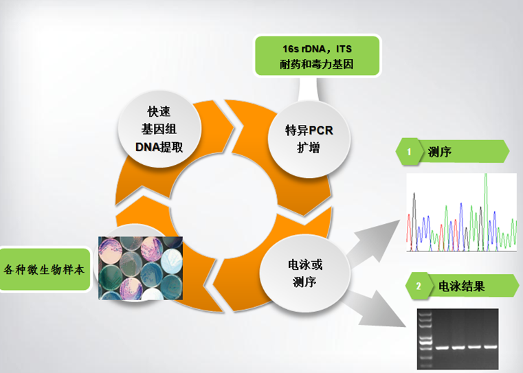 通過對(duì)細(xì)菌16rDNA可變區(qū)和真菌ITS區(qū)進(jìn)行PCR擴(kuò)增,然后測(cè)序和Blast分析,從而獲取微生物種類的準(zhǔn)確鑒定;同時(shí)對(duì)多種微生物特異的毒力基因以及耐藥基因進(jìn)行PCR擴(kuò)增,進(jìn)行致病菌株以及耐藥菌株的精確篩選。