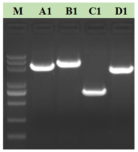 A1: lncRNA某基因:2000bp;B1: 海帶某基因 2700 bp;C1:羅氏沼蝦某基因 750bp;大黃魚(yú)某基因 D1: 1900 bp